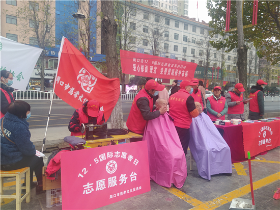 12月6日下午,周口市慈孝文化促進(jìn)會(huì)、周口環(huán)境保護(hù)協(xié)會(huì)的志愿者來到周口中心城區(qū)五一文化廣場(chǎng)開展以愛心剪發(fā)、免費(fèi)剪裁、修補(bǔ)衣褲為主要內(nèi)容的便民志愿服務(wù)活動(dòng)。