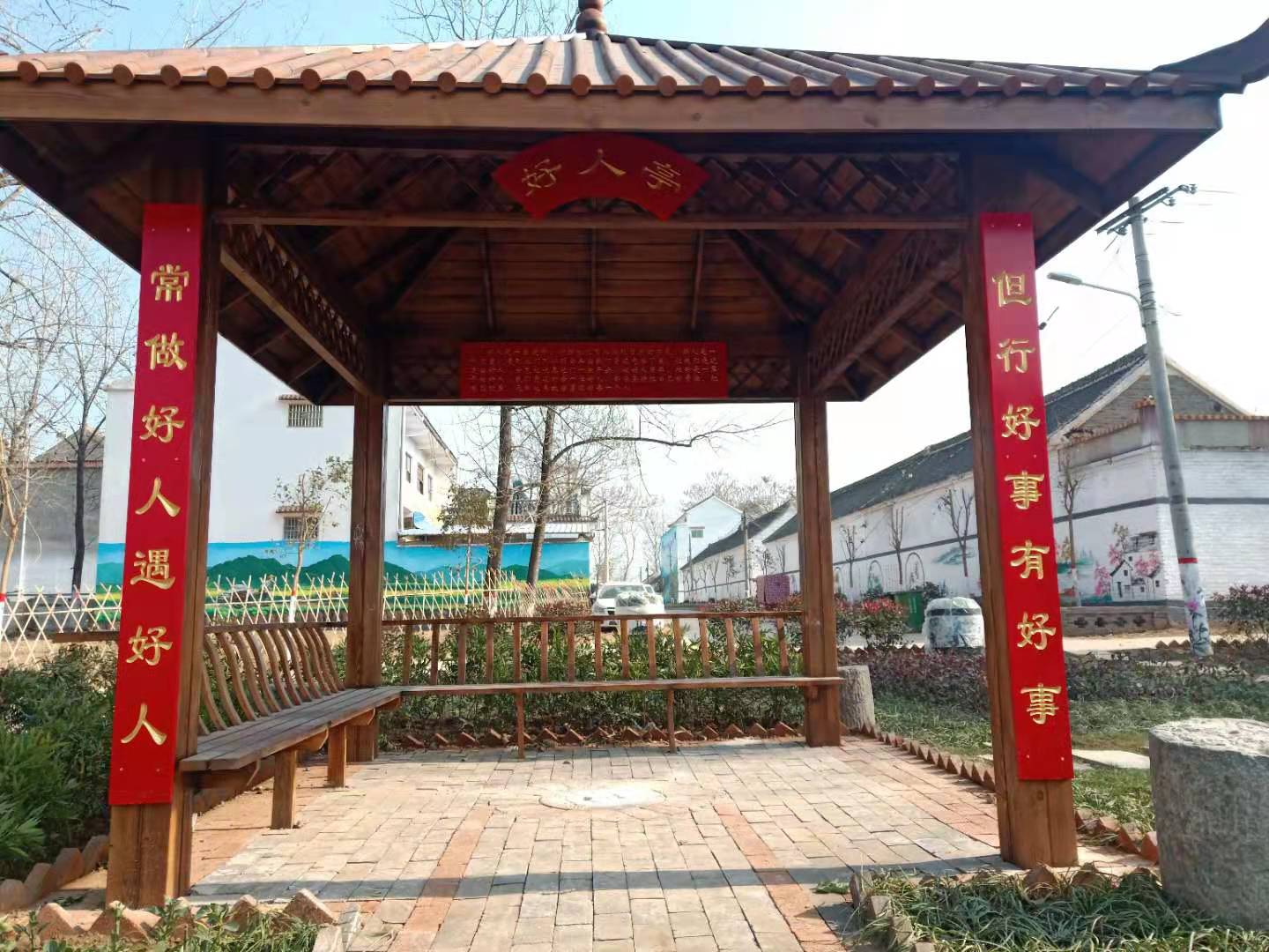 鄉(xiāng)賢帶動,眾籌共建美麗家園 村民聯(lián)誼會推選出會長1名,副會長3名,理事13名,從500多戶村民中選出好鄉(xiāng)賢32名,制作鄉(xiāng)賢榜懸掛到村鄉(xiāng)賢館。建立鄉(xiāng)賢聯(lián)誼群,動員村100多名創(chuàng)業(yè)、經(jīng)商、從政的成功人士,捐款捐物支持家鄉(xiāng)創(chuàng)建行動。建成了占地1000多平方米的紅色文化園、美麗鄉(xiāng)村文化墻2000多平方米、花壇3000多平方米,種植綠化樹3000多棵。崔古同村朱子賢、崔成允、池成乾等鄉(xiāng)賢組成指導(dǎo)組,進村入戶指導(dǎo)美麗庭院創(chuàng)建活動,開展房前屋后綠化美化,種植花草油菜林果。 鄉(xiāng)賢朱立志捐助臉盆500個、垃圾桶500個,為達到“五美庭院”標準的農(nóng)戶發(fā)放獎品。