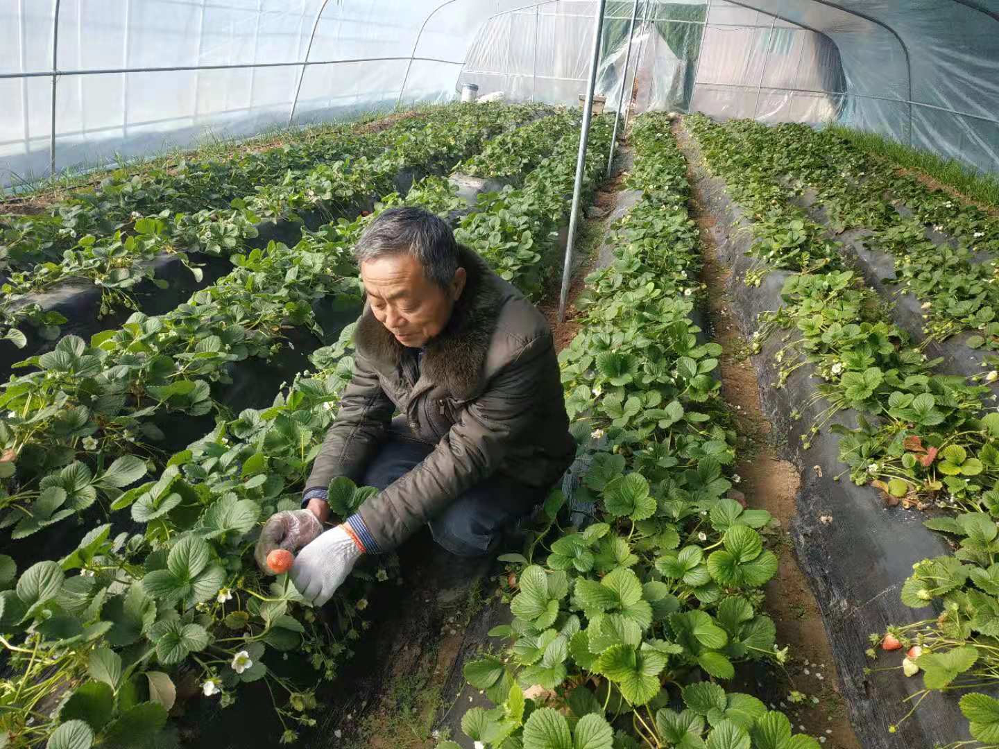 朝霞照在太康縣王集鄉(xiāng)106國道東側(cè)石山村適域種植合作社保溫大棚上,棚里溫暖如春。現(xiàn)年58歲的李小橋行政村黨支部書記李為昌已經(jīng)開始在棚里忙碌,綠葉下的草莓顯得格外紅,他的笑洋溢著希望和成功。
