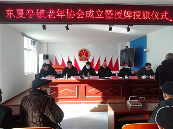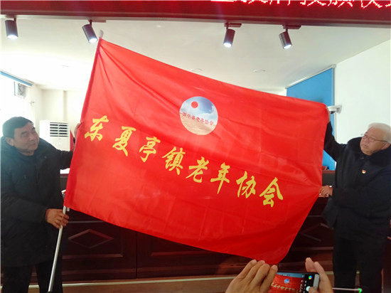 接著,張新芳代表縣老年協(xié)會(huì)向東夏亭鎮(zhèn)老年協(xié)會(huì)進(jìn)行授牌授旗。