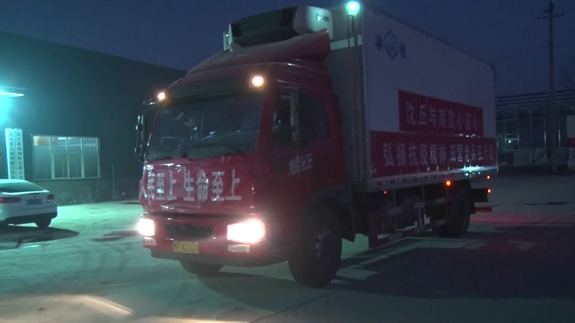 王國輝說:“咱們對接的就是河北南宮市,但是南宮市的工作人員考慮到咱們的安全,也不讓咱們進入南宮的地域,而是去衡水,衡水是低風險,現(xiàn)在不在風險區(qū),這是對方為我們著想。我們把貨到了衡水的外圍一個指定的開闊地方,我們把貨卸下來,我們撤離,然后南宮的同志再過來,轉運到他們車上去?!?/p>