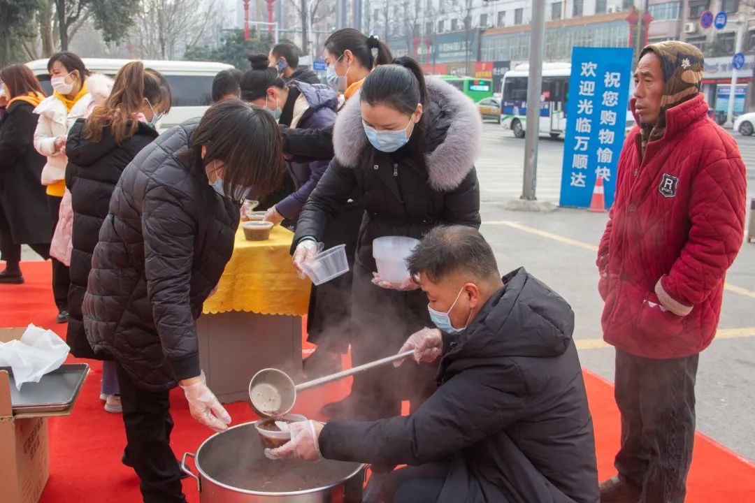 本次活動的主題是“一碗臘八粥,溫暖一座城”。當(dāng)忙碌一陣后的環(huán)衛(wèi)工人來到萬順達(dá)廣場門前時,萬順達(dá)廣場的工作人員一曲《好運來》和《你笑起來真好看》,讓整日忙碌的做著重復(fù)而又枯燥工作的環(huán)衛(wèi)工人們臉上笑開了花。