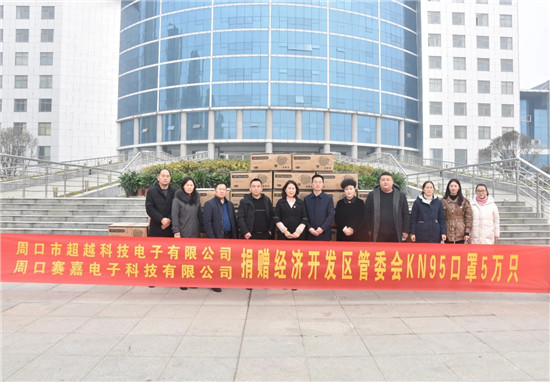 1月22日,周口超越科技電子有限公司、周口賽嘉電子有限公司向開發(fā)區(qū)捐贈KN95醫(yī)用口罩5萬只,助力開發(fā)區(qū)扎實做好疫情防控常態(tài)化工作。開發(fā)區(qū)管委會副主任谷靜對企業(yè)的愛心捐贈表示感謝。