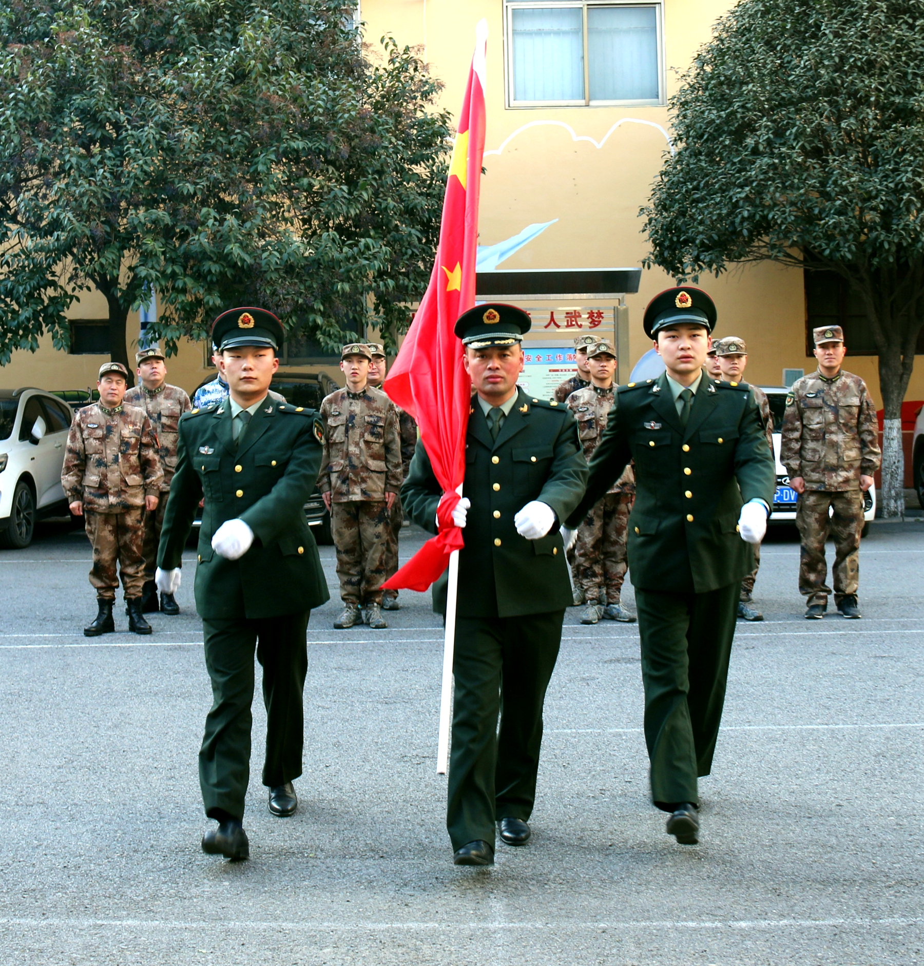 為激發(fā)官兵扎根基層、愛國奉獻和牢記強軍目標、獻身武裝工作實踐的政治熱情,該部決定在春節(jié)舉行升國旗儀式?!吧龂?,既是一次儀式教育,更是一次愛國主義教育,凝聚了官兵愛國情、報國志。激勵大家時刻牢記習主席建軍指示要求,以時不我待的精神投入到實戰(zhàn)化練兵備戰(zhàn),扛起當代國防動員的使命擔當?!痹摬空罘迦绱苏f。