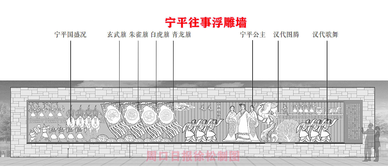府東路北頭與鄲淮路交叉口占地近30畝的文化廣場是調(diào)水渠“三段銜一園”景觀中核心形象段之一。除了綠樹、百花、清流、步道,以及音樂燈光噴泉、西側(cè)建設(shè)有接近生態(tài)自然的親水觀光平臺(tái)之外,這里的5塊浮雕文化墻值得我們深入了解。這組浮雕墻讓古老與現(xiàn)代在這里交相輝映,昭示著無論社會(huì)和科技如何進(jìn)步,源遠(yuǎn)流長的傳統(tǒng)文化永遠(yuǎn)是鄲城人的情感歸宿和精神家園。文化廣場的園路、綠地、建筑等都以鄲城歷史文脈為中心,將現(xiàn)代生活元素與歷史文化元素有機(jī)結(jié)合,營造了一個(gè)文化與生態(tài)自然融合的新地標(biāo)。