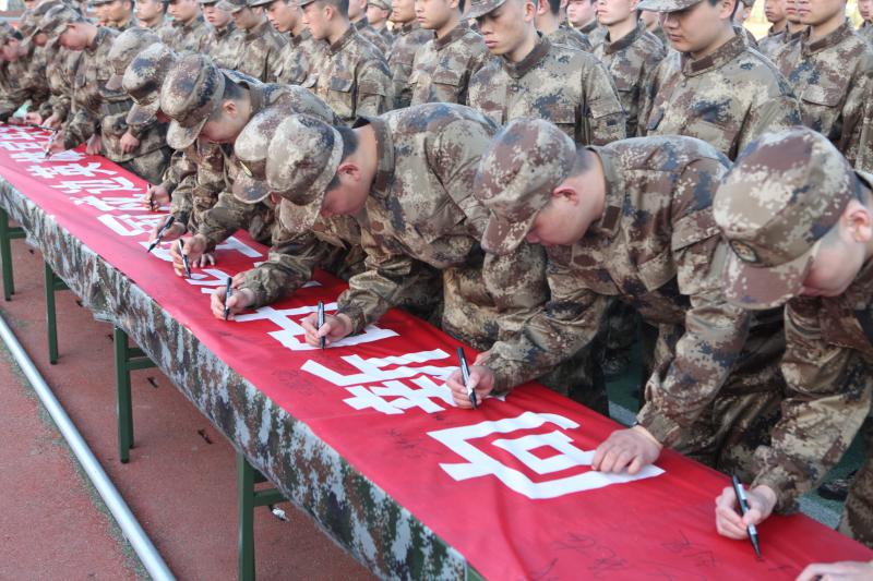 在十幾米“向新時代衛(wèi)國戍邊英雄官兵學習”的條幅上每一名應征青年都鄭重地簽上自己的名字。