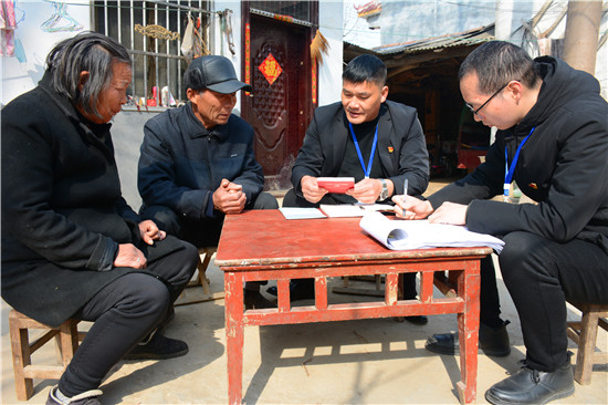 “春節(jié)前夕,有人給您送慰問品嗎?”“有啊,村干部送過了一桶食用油?!薄澳鷤兎蚱迋z個(gè)養(yǎng)老金沒問題吧?”“正常領(lǐng)取,沒有問題。”“有哪個(gè)部門向您收過錢嗎?”“這不屬于非法占地,沒有人來要錢?!薄澳昵澳鷧⒓恿舜逦瘬Q屆選舉嗎?對(duì)干部滿意不?”“參加了,俺對(duì)新任干部沒有意見”......不知不覺臨近中午,邵國闖等微笑告辭。