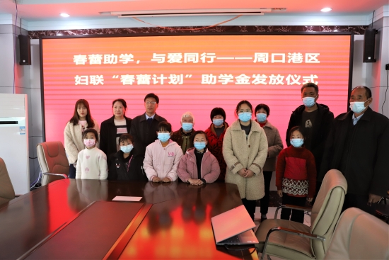 在發(fā)放儀式上,周口港區(qū)婦聯(lián)向轄區(qū)6名家庭困難、品學(xué)兼優(yōu)的中小學(xué)女生發(fā)放“春蕾計(jì)劃”助學(xué)金共5000元,助力她們圓夢(mèng)成才。