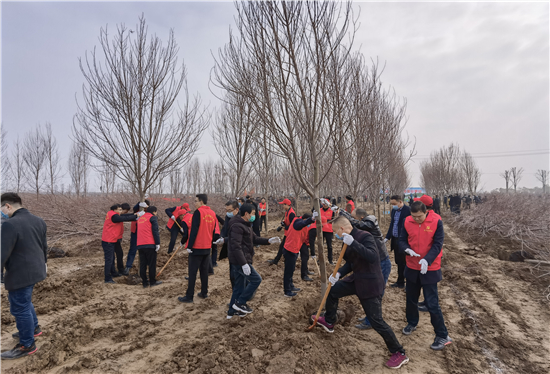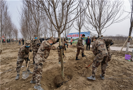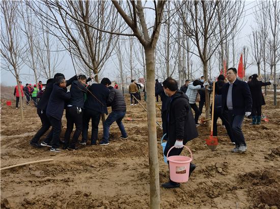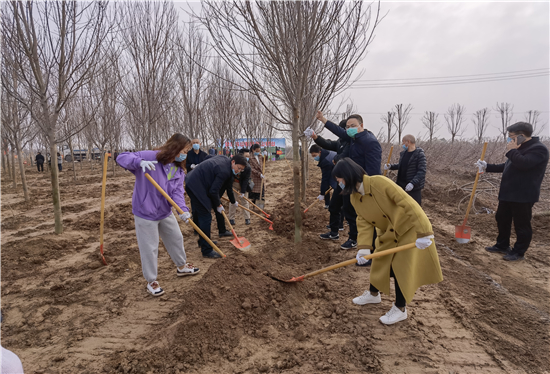 3月12日是全國第43個(gè)植樹節(jié),我市社會各界群眾來到高鐵片區(qū)義務(wù)植樹基地開展義務(wù)植樹活動,為森林周口建設(shè)增綠添彩。栽下棵棵樹苗,留下一片新綠,大家一起扶苗、培土、圍堰、澆灌,現(xiàn)場呈現(xiàn)一派熱火朝天的繁忙景象。②7