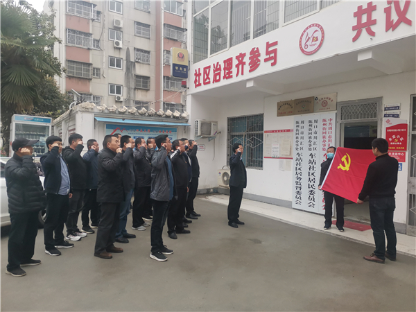 在永安小區(qū)活動(dòng)現(xiàn)場,黨員干部、小區(qū)黨群議事會(huì)成員面對(duì)黨旗,重溫入黨誓詞,牢記共產(chǎn)黨人使命,不忘為民服務(wù)初心。