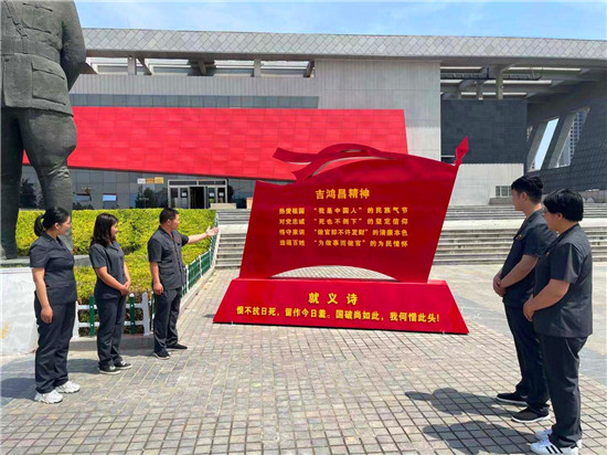 1934年11月9日,吉鴻昌將軍在天津開(kāi)展地下工作時(shí)不幸被捕。在獄中,他受盡嚴(yán)刑拷打,但始終堅(jiān)貞不屈。11月24日13時(shí)30分,吉鴻昌在刑場(chǎng)上以樹枝作筆、以大地為紙,寫下了蕩氣回腸的就義詩(shī):“恨不抗日死,留作今日羞。國(guó)破尚如此,我何惜此頭?!庇枚虝憾滟F的生命詮釋了一名共產(chǎn)黨員的初心和使命。