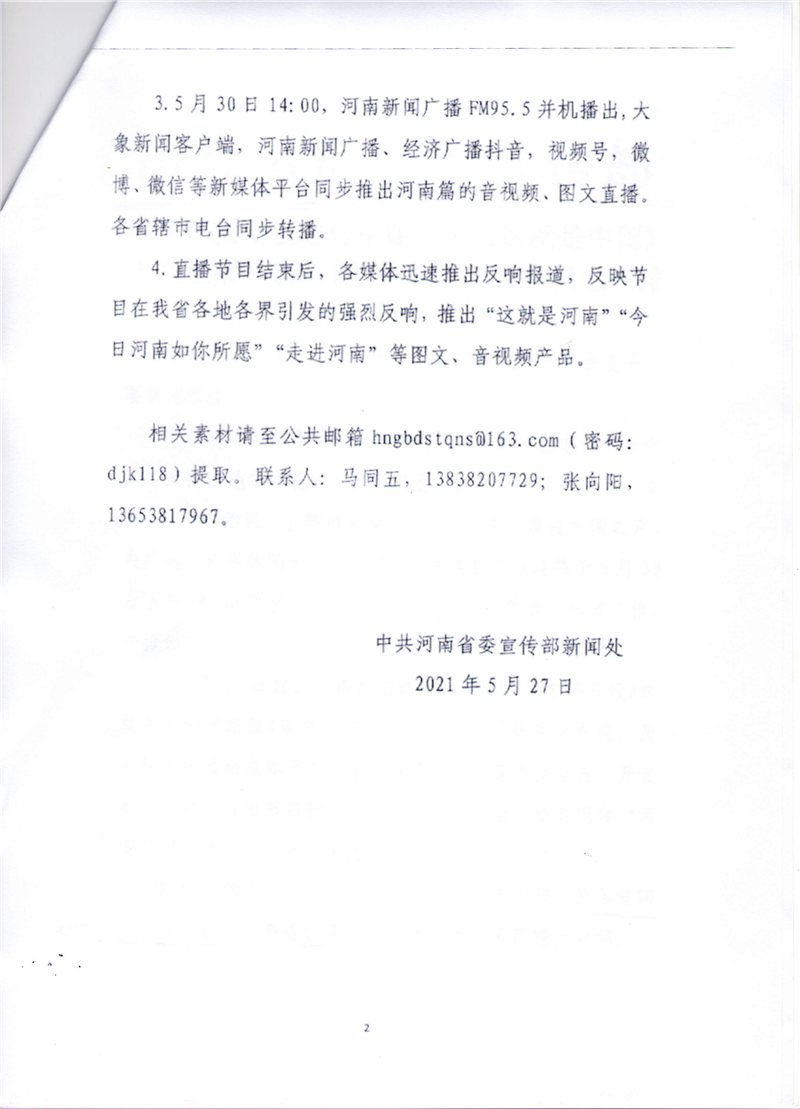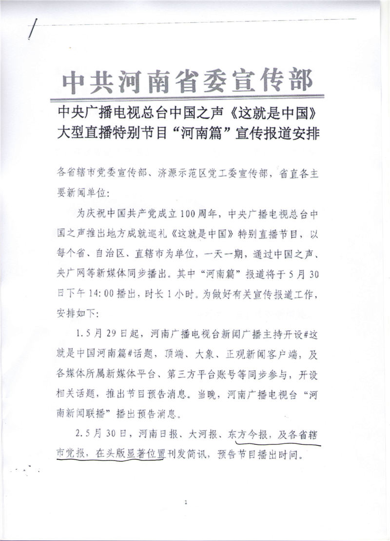 中央廣播電視總臺中國之聲《這就是中國》大型直播特別節(jié)目“河南篇”宣傳報道安排