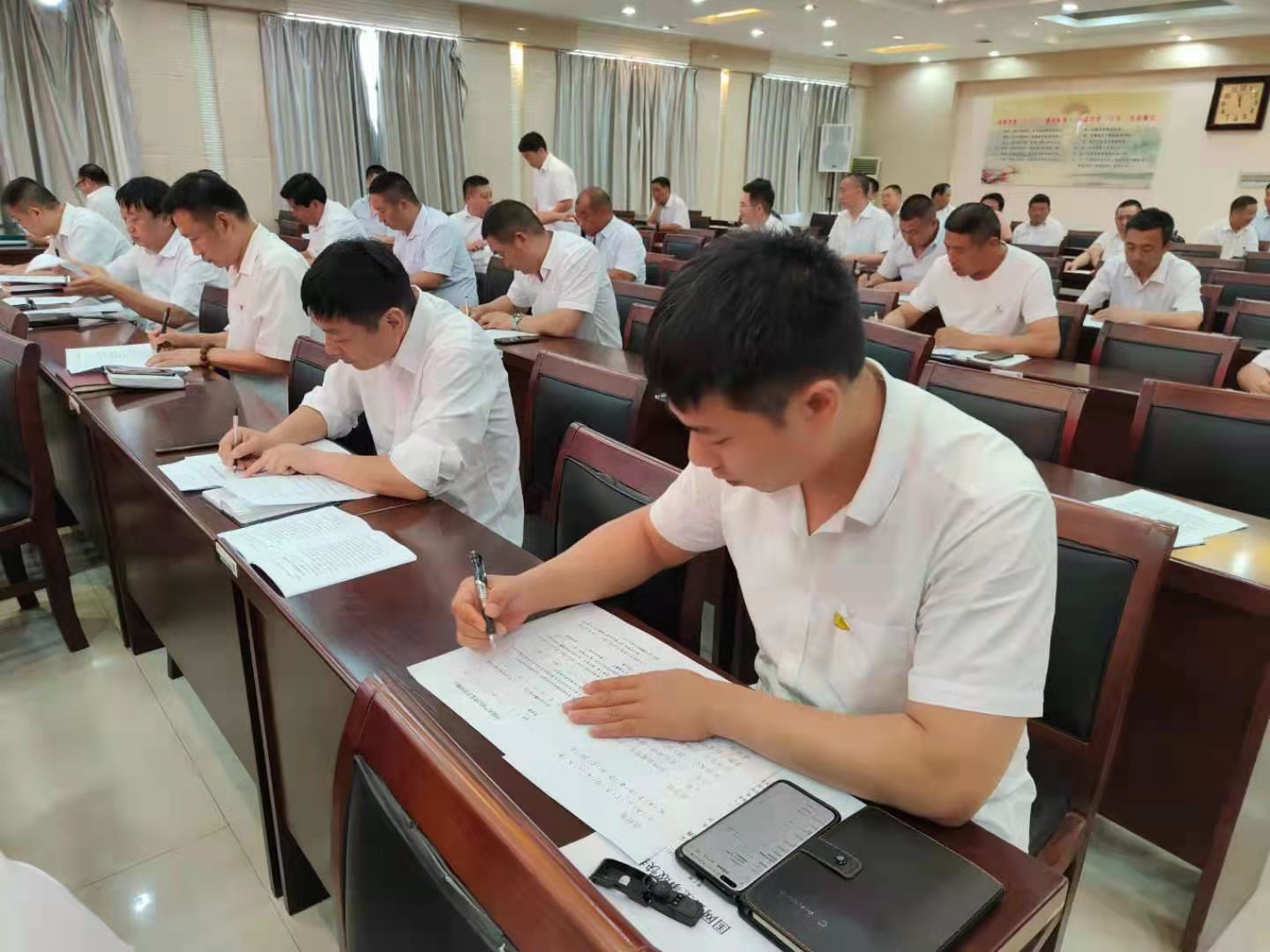 此次測試答題采取書面答卷的形式進行,考題以單項選擇題、多項選擇題以及簡答論述題三種形式為主,旨在全面檢驗公司黨員干部學(xué)習(xí)貫徹黨紀政紀條規(guī)的學(xué)習(xí)成果,促進大家自覺“學(xué)紀、知紀、遵紀”。