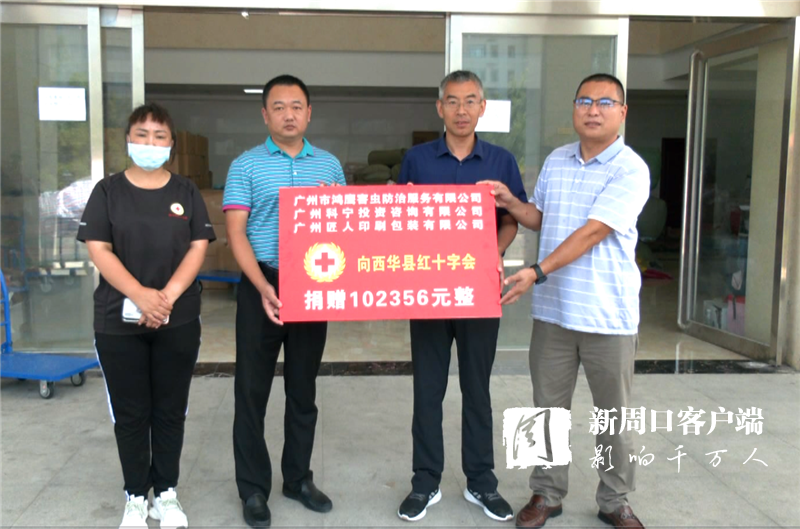 令人意想不到的是,其實早在7月29日,許金山就受廣州市鴻鷹害蟲防治服務有限公司委托,向西華縣紅十字會捐獻善款10萬余元。