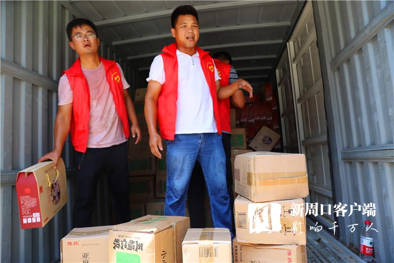當(dāng)天中午,掛著印有“昨天大家助我脫貧,今天我為救災(zāi)出力!”條幅的防汛救災(zāi)物資運輸車抵達周口港區(qū)?!耙皇乔皟商旆烙_風(fēng)‘煙花’,我們早就來了。”隆古村黨支部書記段長春一下車就連忙慰問眾人。一同前往的還有6位年輕力壯的志愿者,他們不辭勞苦,和港區(qū)消防、城管人員一起頂著烈日,用了半個多小時將滿車物資搬運到位。