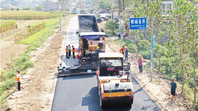 • 9月13日,記者在鄲城縣與淮陽(yáng)區(qū)重要連接通道張葛路(鄲城張完鄉(xiāng)至淮陽(yáng)葛店鄉(xiāng))搶修現(xiàn)場(chǎng)看到,經(jīng)過(guò)夜以繼日地前期搶修施工,目前正式進(jìn)入鋪油工序。待今年年底全線貫通后,鄲城縣張完鄉(xiāng)、汲水鄉(xiāng)、虎崗鄉(xiāng)、吳臺(tái)鎮(zhèn)、李樓鄉(xiāng)和淮陽(yáng)區(qū)葛店鎮(zhèn)沿線6個(gè)鄉(xiāng)鎮(zhèn)的數(shù)十萬(wàn)居民將出行無(wú)憂,解除沿線數(shù)萬(wàn)畝農(nóng)作物收割運(yùn)輸難題。