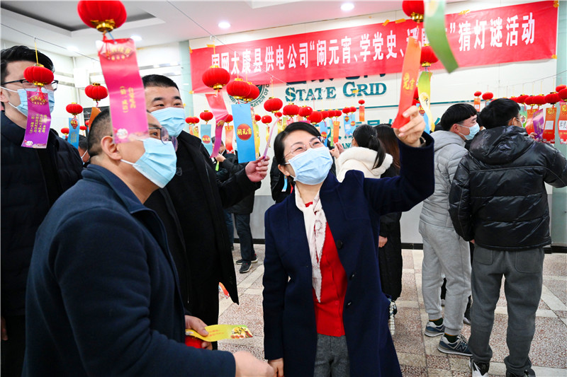 2月15日,為慶祝元宵佳節(jié),太康縣供電公司舉行“鬧元宵、學(xué)黨史、話(huà)廉潔”猜燈謎活動(dòng)。燈謎不僅涵蓋黨紀(jì)法規(guī)、黨史知識(shí),還將廉潔文化融入其中,既有趣味性,又有知識(shí)性,活躍了節(jié)日氣氛。