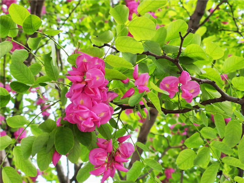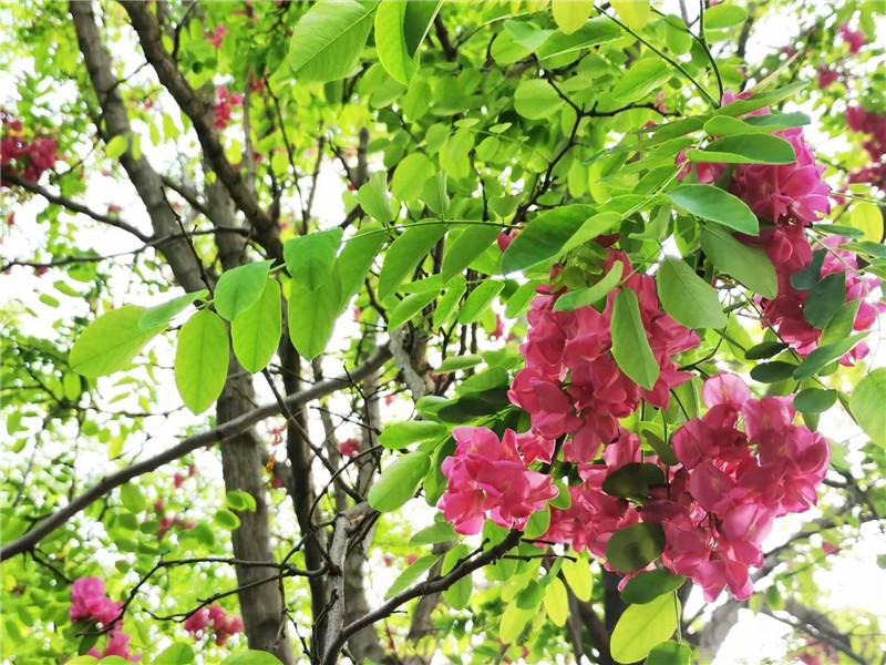 “槐林五月漾瓊花,郁郁芬芳醉萬家。”眼下,在周口濱河公園,紅色的槐花怒放,芳香四溢,惹人心醉。陽光下,一串串、一簇簇、一樹樹槐花隨風(fēng)搖曳,美不勝收。周口日報·周道客戶端記者 普淑娟 攝