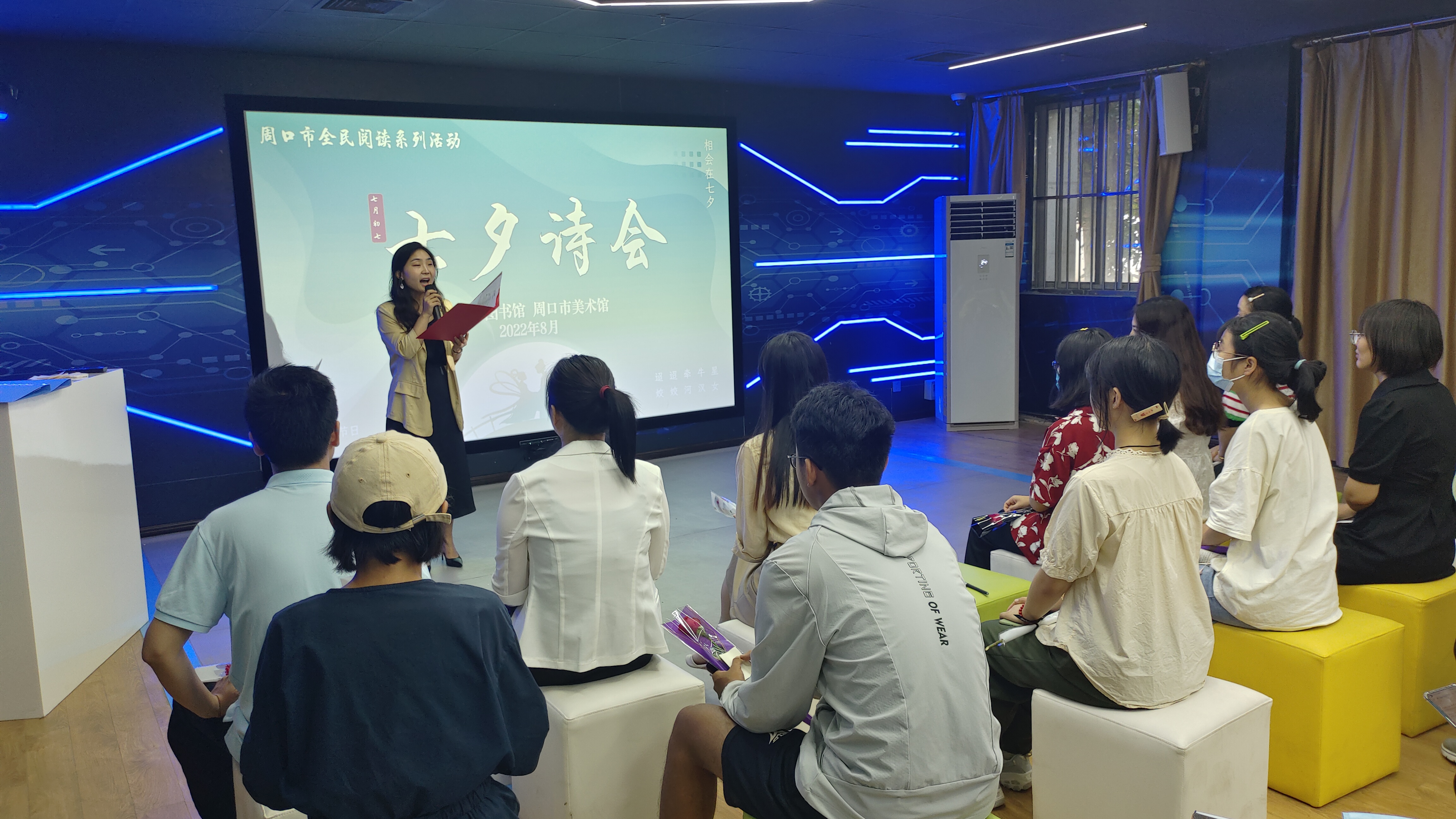 • 8月4日,市圖書館與市美術(shù)館在一樓智慧空間共同舉辦七夕詩會,以詩傳情,開啟中國式浪漫,20多名詩詞愛好者參加活動。