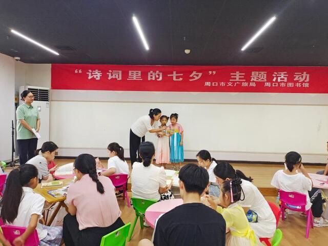 • 七夕今宵看碧霄,牽牛織女渡河橋。8月20日,一場別開生面的“詩詞里的七夕”主題活動在周口市圖書館青少年活動中心舉行。書香覓詩詞、同心題詩詞、粘土畫詩詞……參與的孩子在詩情畫意中感受到中華傳統(tǒng)節(jié)日的內(nèi)涵。