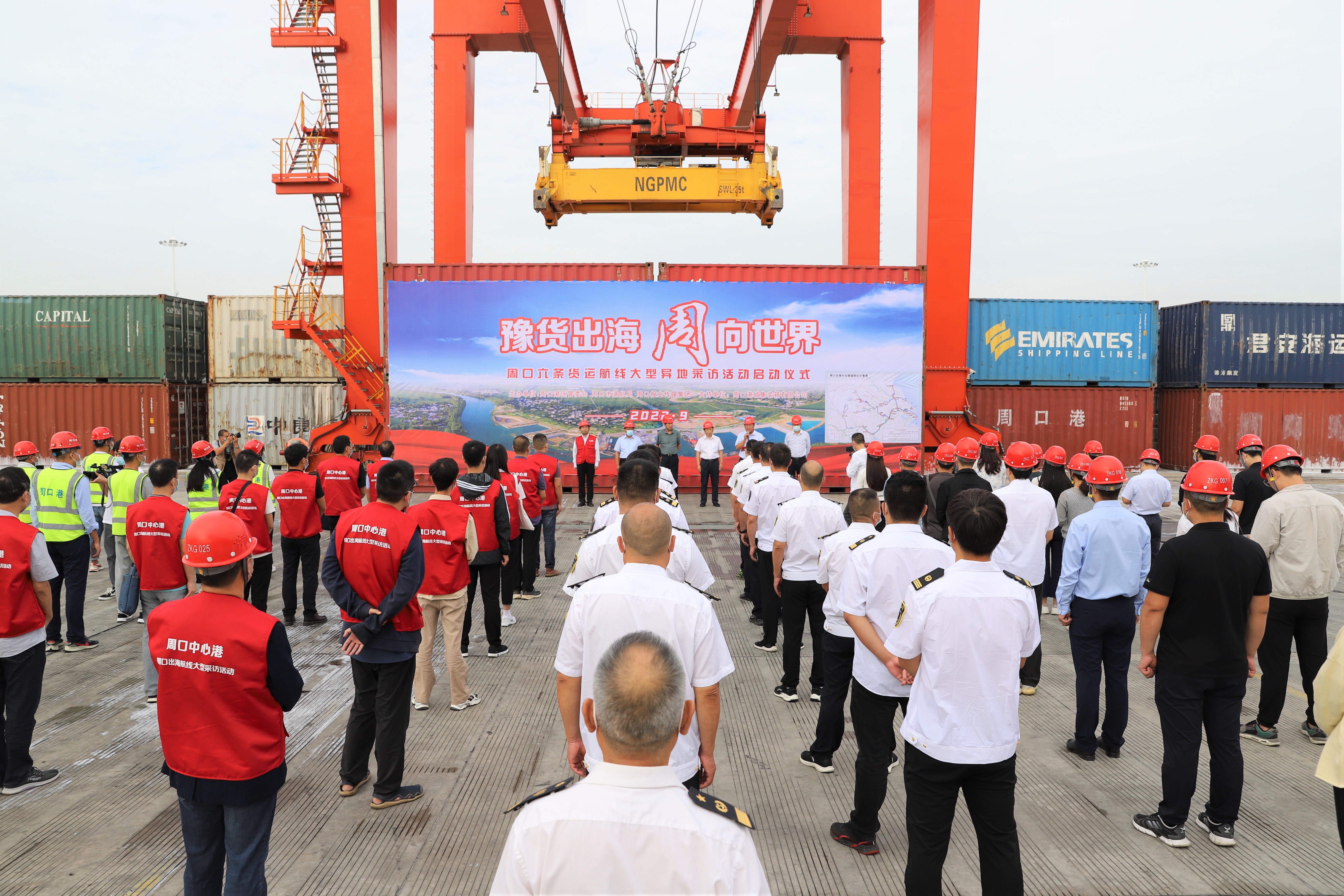 9月21日上午,由周口港區(qū)管委會、周口市港航局、周口報業(yè)傳媒集團、周口港城集裝箱有限公司聯(lián)合組織開展的豫貨出海 “周”向世界——周口六條貨運集裝箱航線大型異地采訪活動在周口中心港碼頭正式啟動。