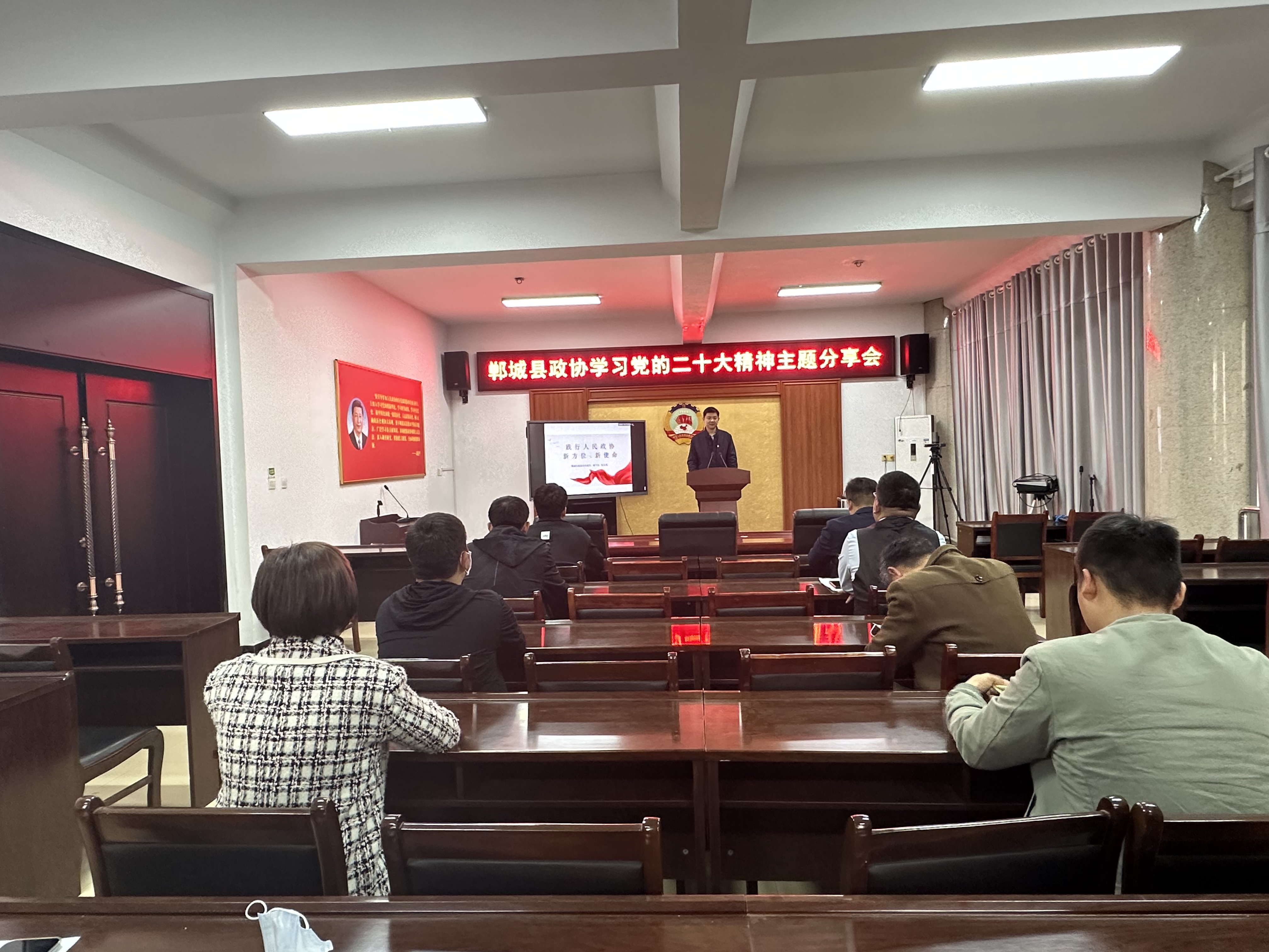為深入學習宣傳貫徹黨的二十大精神,落實中央和省委、市委、縣委、縣政協(xié)工作會議精神,持續(xù)深化“委員讀書學習”活動,提升政協(xié)履職實效,激發(fā)干事活力,11月17日,鄲城縣政協(xié)舉辦“學精神踐行動 閱讀向未來”學習黨的二十大精神主題分享會。縣政協(xié)秘書長朱東風及全體機關人員參加活動。