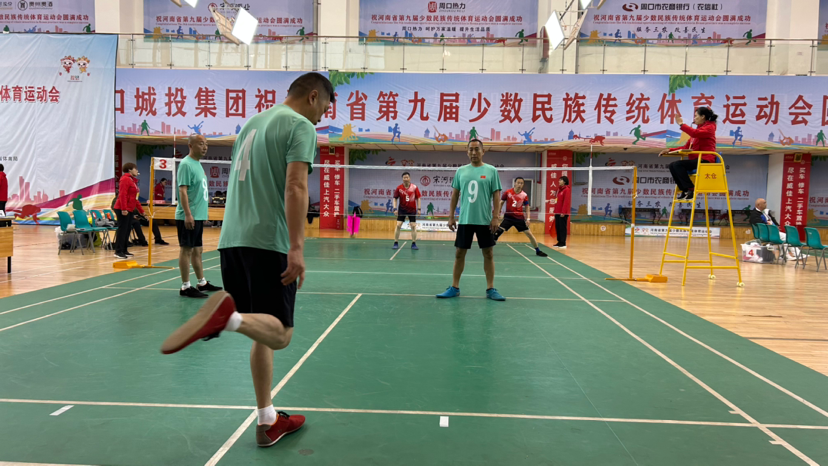 扣殺、挑球、倒鉤、跳踢……在第九屆全省民族運動會毽球比賽的熱身場上,運動員們熟練地踢著毽子,小小毽球在球網上凌空穿梭,上下翻飛。周口毽球代表隊運動員高紅山腳蹬舒適軟底毽球鞋,在隊友們的默契配合下,毽球上下翻轉,不時甩出一道道完美的拋物線。