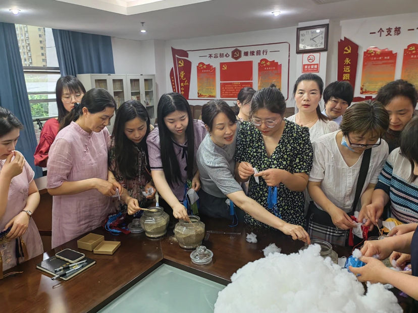 經(jīng)過前期的宣傳發(fā)動及線上報名,約30位職工參加了此次活動。活動現(xiàn)場,中藥專家向女職工們講解端午節(jié)來歷、中醫(yī)藥知識及香囊功效,通過演示和指導告知香囊的制作要領,引導大家切身感受傳統(tǒng)文化的魅力。