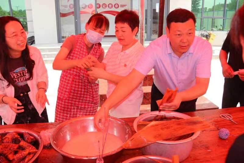 在包粽子活動現(xiàn)場,省糧食和物資儲備局、鹿邑縣文明辦志愿者同黨員群眾一起包粽子、話端午,為留守兒童佩戴五色繩和香囊,弘揚(yáng)傳統(tǒng)文化,培育文明鄉(xiāng)風(fēng)?,F(xiàn)場一片歡聲笑語、其樂融融,大家團(tuán)結(jié)協(xié)作、共同配合,在一雙雙巧手下,一個個飽滿漂亮的粽子出現(xiàn)在大家面前。