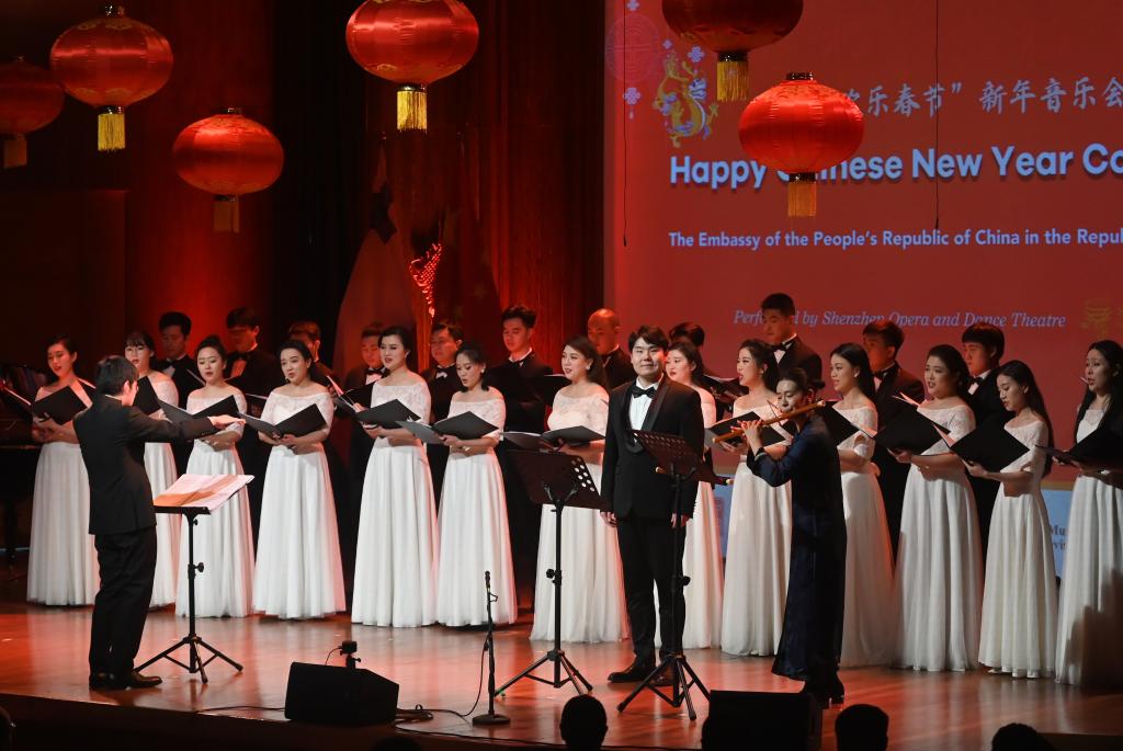 作為西班牙馬德里“歡樂春節(jié)”系列慶祝活動的一部分,“中國新春音樂會”日前在馬德里國家音樂廳舉行。從《陽關(guān)三疊》等中國詩詞合唱作品,到《敖包相會》《茉莉花》等中國民歌,再到《飲酒歌》等西方音樂選段,深圳歌劇舞劇院合唱團(tuán)與民樂演奏家合力獻(xiàn)上一臺融合中西經(jīng)典曲目的音樂會。