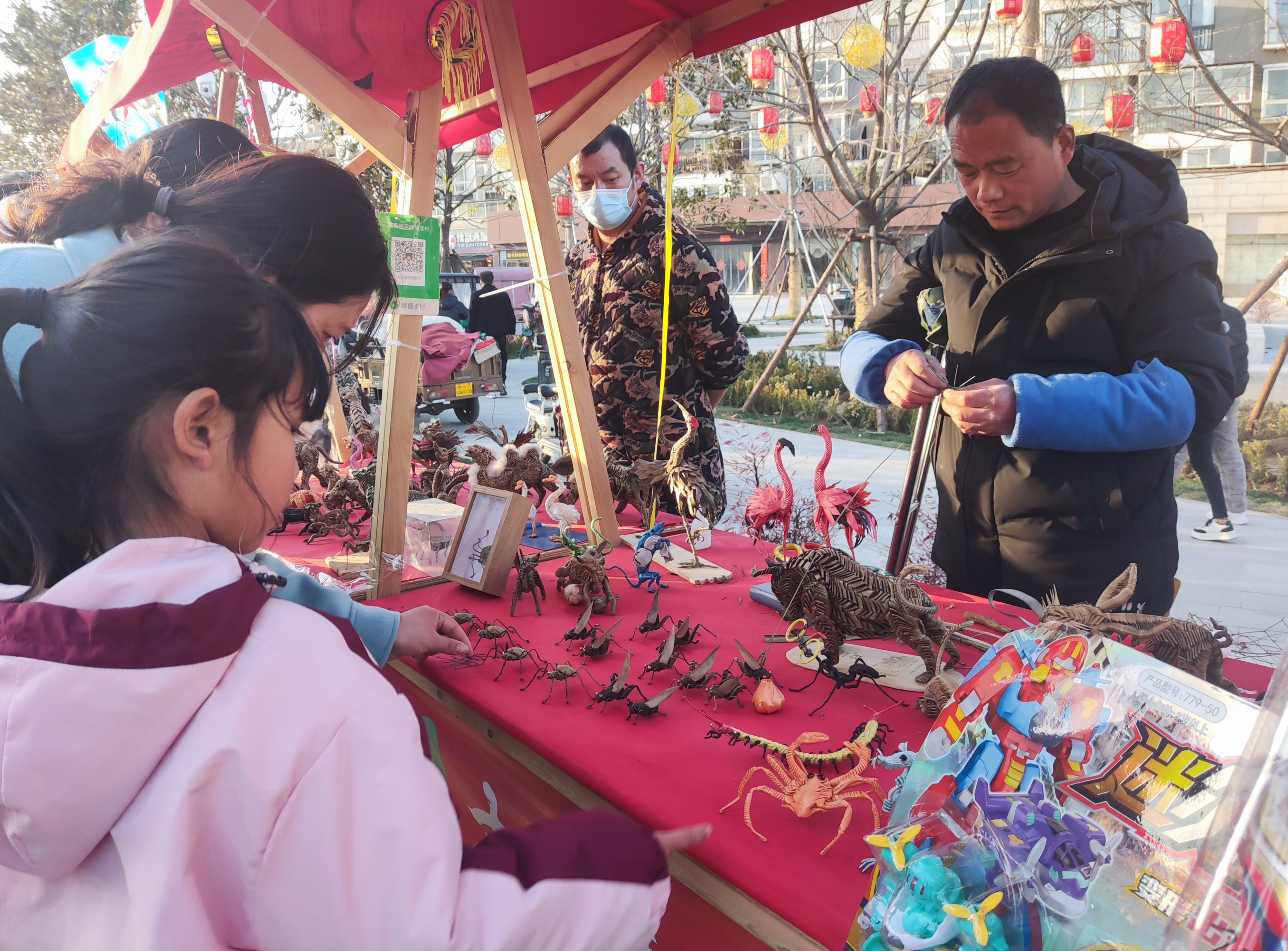 棕編、草編、面塑、糖人、泥泥狗、布老虎……“古風(fēng)集市”上,千姿百態(tài)的民俗作品,烘托出充滿文化氣息的年味兒。