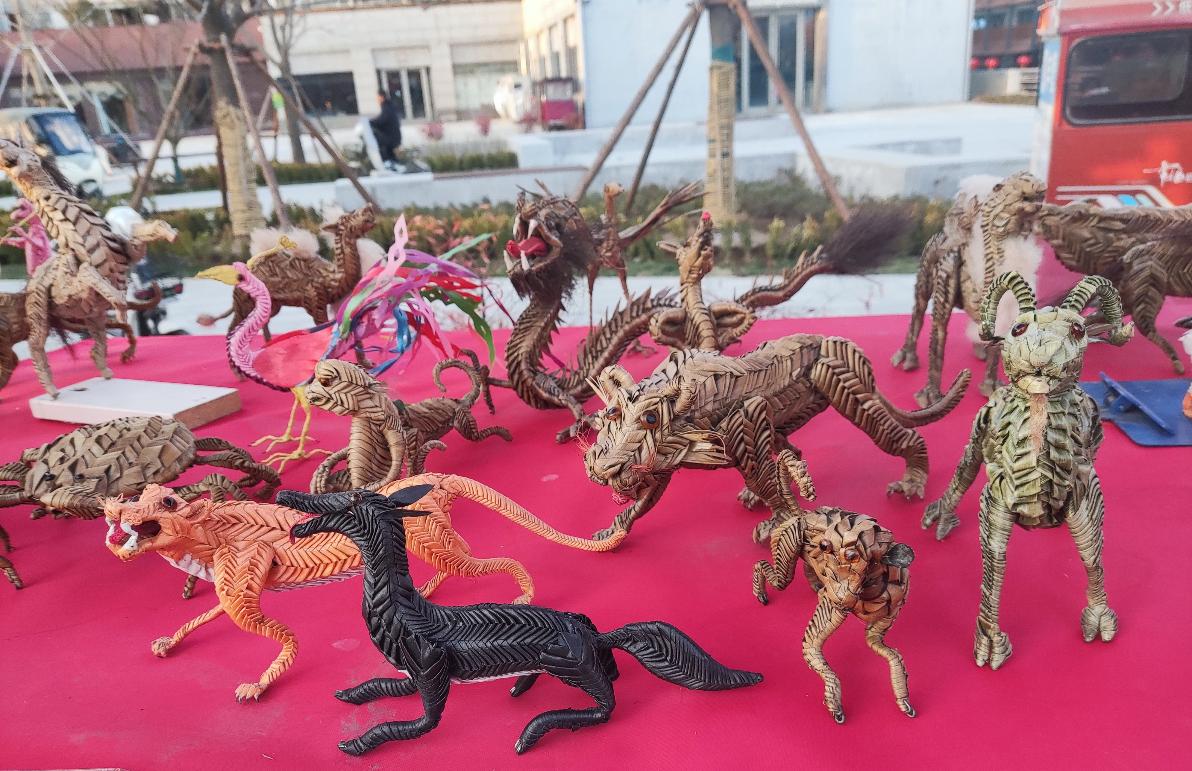 長龍、螞蚱、山羊、老虎、駱駝……朱洪濤的作品栩栩如生、花樣繁多,讓游客目不暇接。