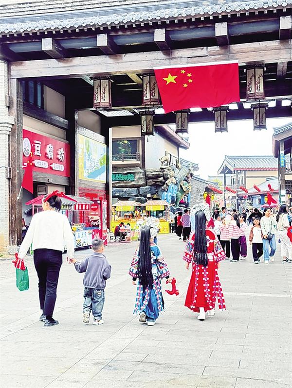 • 10月7日,游客身著傳統(tǒng)民族服飾,漫步在周口建業(yè)運河古鎮(zhèn)。她們一襲華裳,略施粉黛,與古色古香的建筑融為一體,讓人仿佛置身于一場時空穿越之旅,營造了喜慶的節(jié)日氛圍。