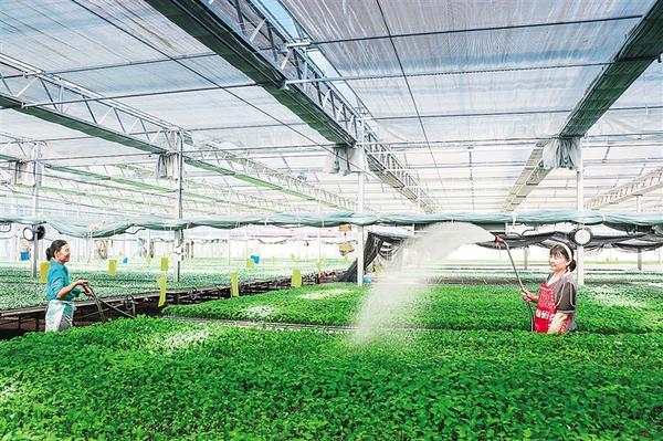 連日來,河南農(nóng)業(yè)大學扶溝蔬菜研究院的工作人員多次為蔬菜種苗噴水降溫。為降低高溫對蔬菜種苗造成的不利影響,該院采取多種措施為大棚降溫,保證蔬菜種苗健康成長。谷志方 攝