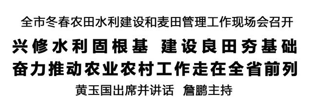 本報訊 (記者 王艷) 12月12日,全市冬春農(nóng)田水利建設(shè)和麥田管理工作現(xiàn)場會在商水召開,深入學(xué)習(xí)貫徹習(xí)近平總書記在河南考察時重要講話精神和關(guān)于“三農(nóng)”工作、治水興水的重要論述,全面落實(shí)全省冬春農(nóng)田水利建設(shè)和麥田管理視頻會議部署,分析研判當(dāng)前形勢,安排部署重點(diǎn)任務(wù),扎實(shí)推進(jìn)今冬明春農(nóng)田水利建設(shè)和麥田管理等重點(diǎn)工作。市委書記黃玉國出席并講話。市長詹鵬主持。