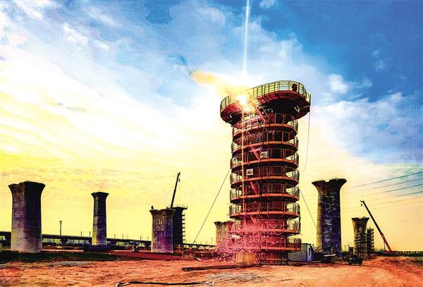 12月7日傍晚,在建的平漯周高鐵周口段項目太清路北側(cè)工地上,工人們正在樁柱上焊接構(gòu)件,電弧光猶如探照燈照耀天空,散落的電弧花點綴了夕陽西下的美景。