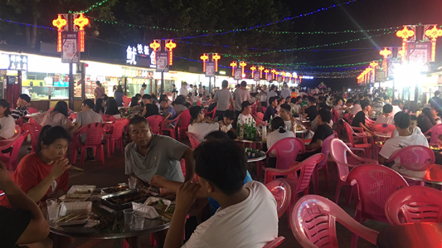 夜幕降臨,花燈初上,位于開(kāi)發(fā)區(qū)廣場(chǎng)的南廣場(chǎng)夜市漸漸熱鬧起來(lái)。