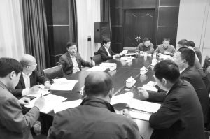 梁建松與相關(guān)單位負(fù)責(zé)同志商討縣級財政產(chǎn)業(yè)發(fā)展引導(dǎo)基金實(shí)施方案。(記者 劉俊濤 攝)