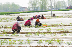 昨日,瓜農(nóng)正在為西瓜苗壓秧、修剪。在周營(yíng)鄉(xiāng)趙寨村,大棚種植戶王中紅種植的溫棚覆膜西瓜,由于種植科學(xué)、品種優(yōu),所以長(zhǎng)勢(shì)喜人,預(yù)計(jì)5月中旬就能上市。(記者 韋偉 通訊員 王祥宇 幺佳 攝)