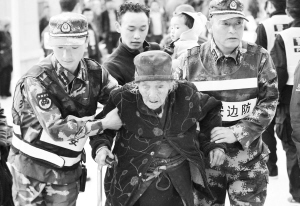 5月14日,西藏吉隆縣江村附近的桑清邊防檢查站武警在幫助村民撤離。當(dāng)日上午,西藏日喀則吉隆縣江村52名群眾安全撤離至吉隆鎮(zhèn)安置點。新華社發(fā)