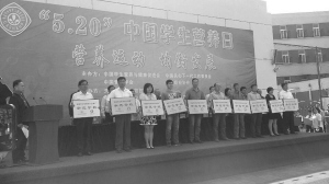 圖為國(guó)家“‘學(xué)生奶飲用計(jì)劃’推廣示范學(xué)?!笔谂苾x式。
