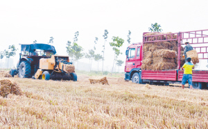 6月8日,紙店鎮(zhèn)越有養(yǎng)牛場與紙東村慧豐種植專業(yè)合作社在麥田里簽下秸稈收購訂單,1000多畝地的秸稈全部回收,讓該村的秸稈禁燒工作提前完美“收官”。圖為越有養(yǎng)牛場的工人跟在秸稈打捆機后面,往大卡車上裝秸稈。(遲馳 攝)